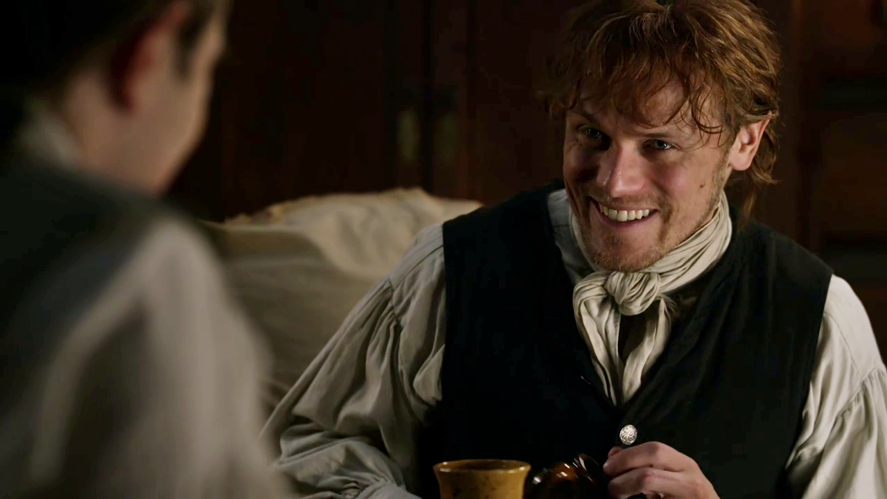 Aburrimiento desde luego no tiene, querido Murtagh. Más tarde, cuando todo el mundo duerme en esa casa tan pequeña cuando mira que había espacio para hacerla grande, Jamie y John están comiéndose todo lo comible...