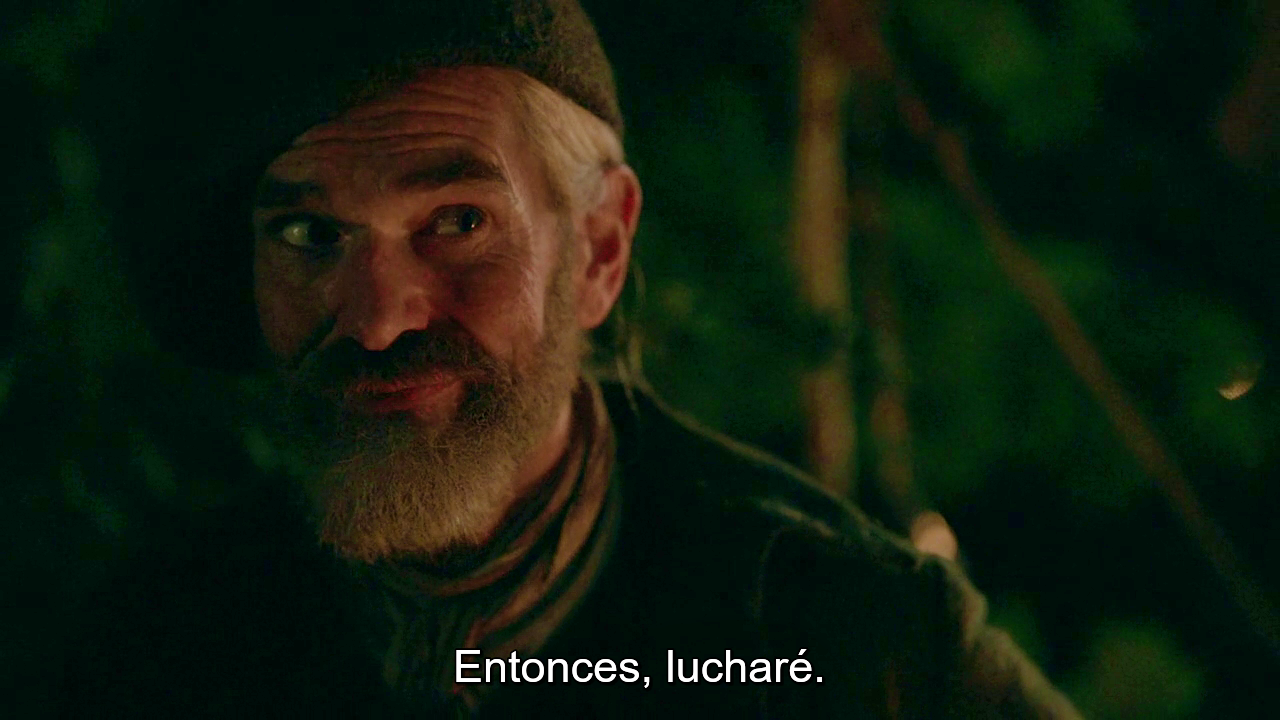 Pero los razonamientos de Roger son lógicos, ya que Murtagh sabe que viene del futuro, como la Neutrex, y va a creer cualquier cosa de esta clase que le diga. Así que Jamie le dice que se vaya al anochecer, con la escarapela guardada para que no le peguen un disparo en el culo a la vuelta y con un pañuelo blanco en el bolsillo para pedir tregua si la cosa se pone jodía (cosa que pasará sin duda, esto es Outlander) y avisen a Jamie.